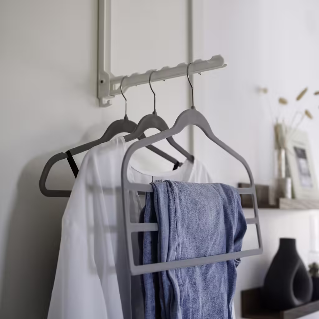 Türhängender Kleiderbügelhalter, ideal für alle mit begrenztem Platz.